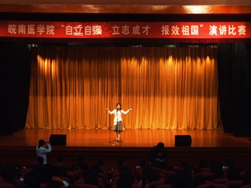 4月11日晚由学生处主办、团委协办的我校“自立自强、励志成才、报效祖国”大学生演讲比赛决赛在大学生活动中心举行。校党委副书记郑勇超、学生处、团委、各系的领导和老师莅临比赛现场。各系对本次大学生演讲比赛非常重视,在学生中广泛宣传动员,得到了广大同学的热情支持和参与,经过年级初赛、系部预赛,共有18个参赛作品最终进入总决赛。演讲形式除了个人演讲,还有二人、三人组合等。来自全校各系的同学用激情谱写了一首首独立自强、励志爱国的乐章。“我们担负着祖国人民健康的神圣使命,是在为最神圣的医疗事业燃烧我们的青春与热血,是在感谢和报答生养我们的祖国和人民。”比赛期间,每一个灿烂的微笑,每一个优美的姿势,无不洋溢着青春的热情,无不散发着蓬勃的朝气!选手的真情演讲让在场的听众和评委深为感动!精彩的演讲不时赢得阵阵掌声。全校有800多名学生聆听了演讲。