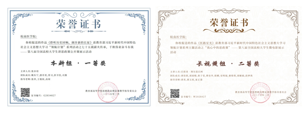 三是育人成效更加突出。近三年,指导学生参加各级各类比赛并获得相关奖项。指导学生在第六届全国高校大学生讲思政课公开展示活动中获三等奖1项、优秀奖2项,在第七届、第八届全国高校大学生讲思政课公开展示活动中分别获三等奖1项、一等奖1项;在第七届、第八届全国高校大学生微电影展示活动中各获二等奖1项;指导学生参加安徽省大学生学习马克思主义理论成果大赛获二等奖6项、三等奖10项,2022年学校获得“最佳组织奖”。