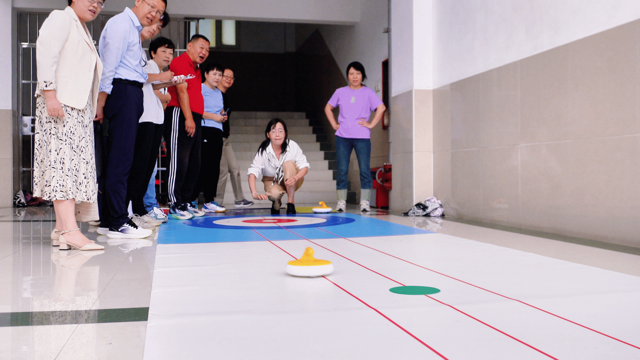 “锚定目标”(旱地冰壶)项目不仅是体力的比拼,更是智慧的较量。选手们手持冰壶,精准计算力度与角度,全神贯注地瞄准、发力,每一次精准的投掷都能引来阵阵喝彩,每一次巧妙的布局都体现了智慧与技巧的碰撞。大家在精准控制与默契配合中向目标靠近,用智慧与耐心完成每一轮挑战,让赛场既充满竞技的紧张感,又不失趣味与优雅。