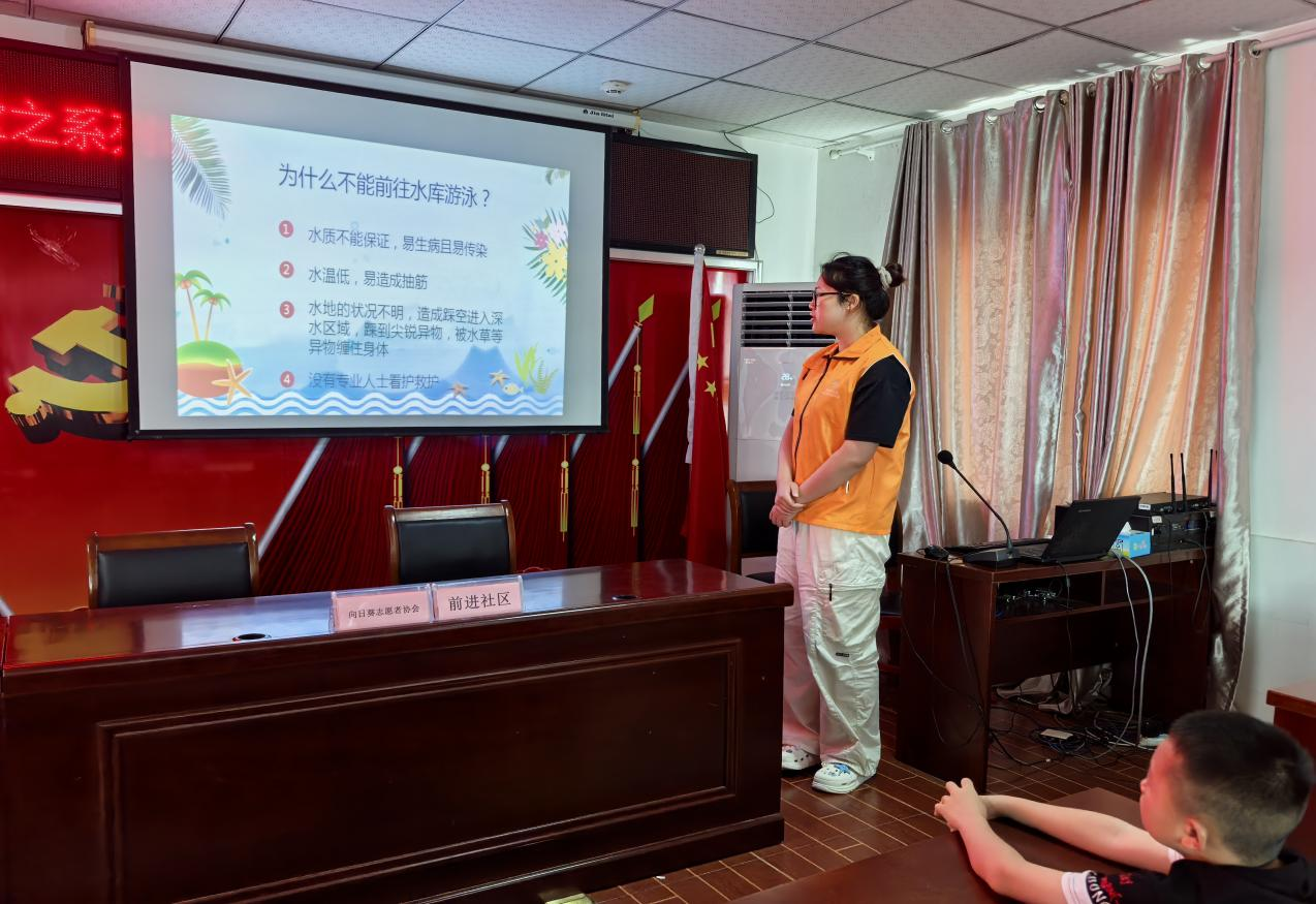 为确保活动顺利开展,团队成员首先围绕文化传承、健康科普、安全教育等多元化主题内容进行筛选,精心设计每一期的课程内容和互动环节,力求让课堂既有知识性又不失趣味性。同时,团队积极与前进社区沟通对接,反复打磨活动流程,针对课程讲解、物资准备、安全保障等方面进行专项准备,为系列活动的顺利启动奠定了坚实基础。7月7日,活动启动仪式在前进社区党群服务中心举行,前进社区党委副书记宁燕出席并发言,希望孩子们可以在这里学到科学探索的精神和实践创新的能力,成为心怀满腔热血、手握登高钥匙,在成长之路上不断突破自我的追梦少年。