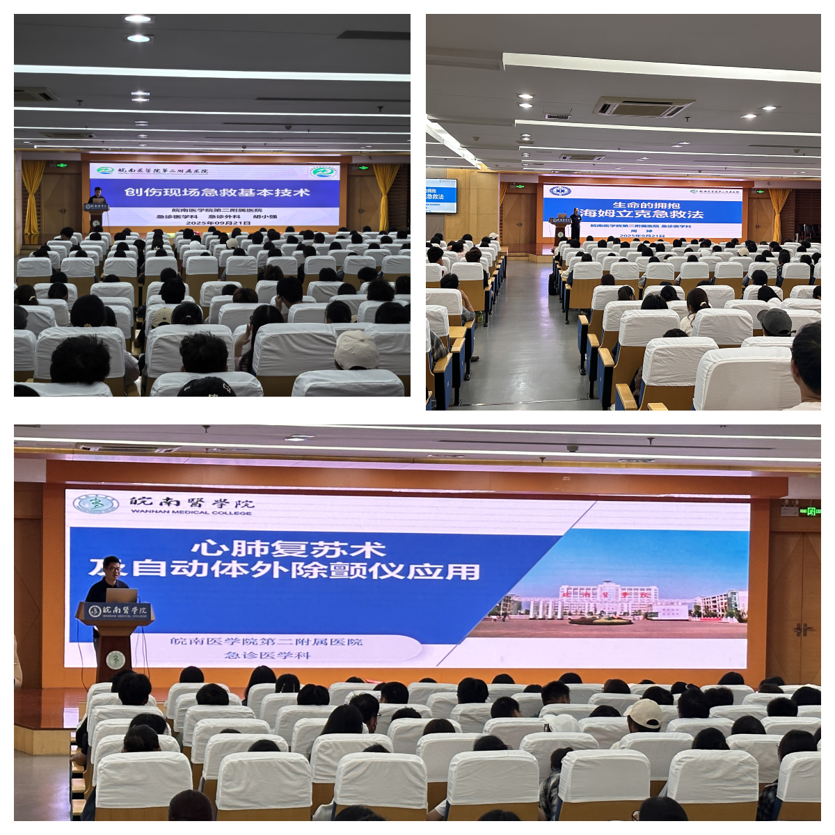 为深入推进学校急救教育试点建设,夯实医学专业新生基础素养,9月21日下午,我校组织开展2025级新生应急救护技能专项培训,为刚踏入医学殿堂的新生们讲授“守护生命”的启蒙一课。