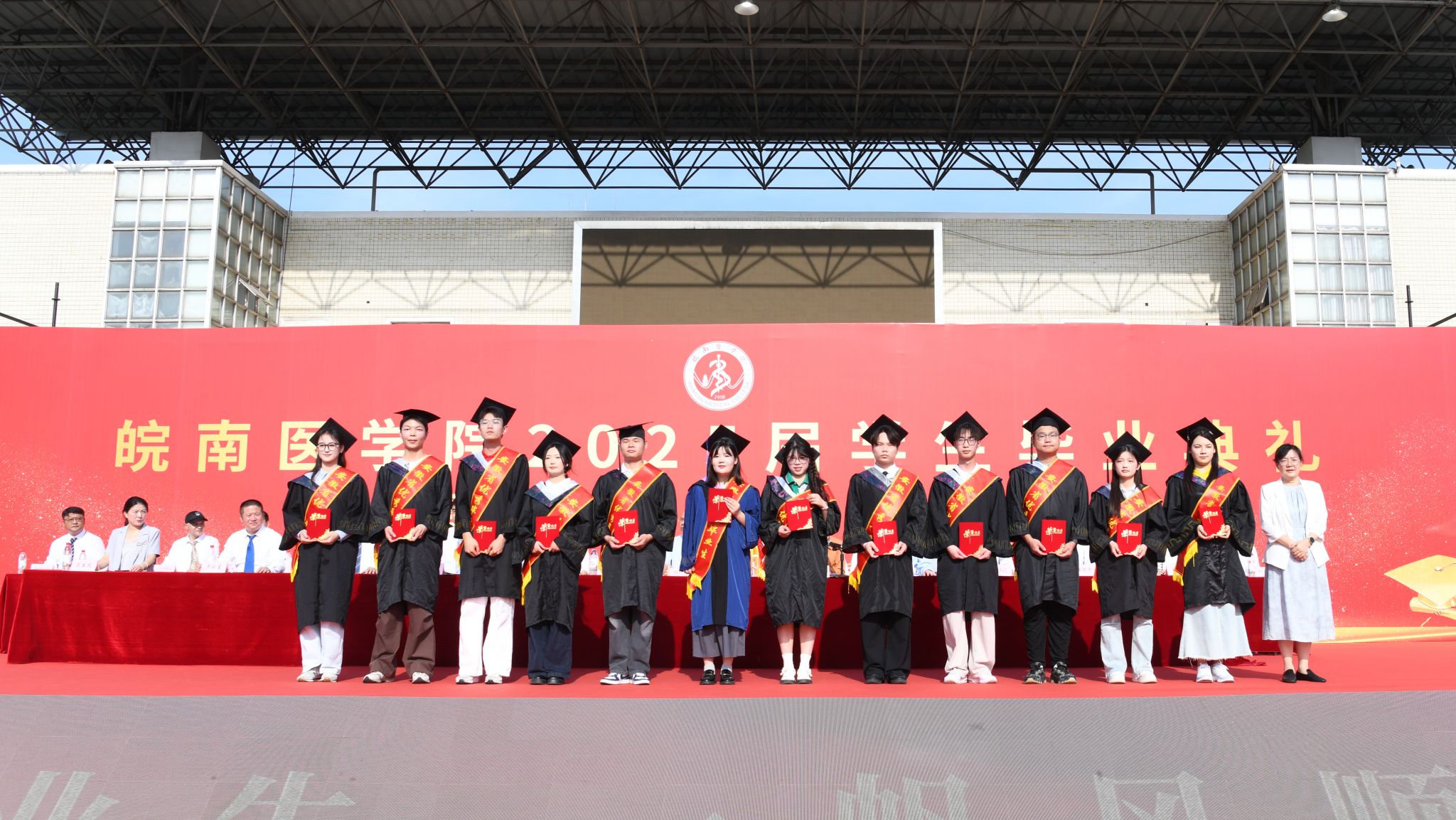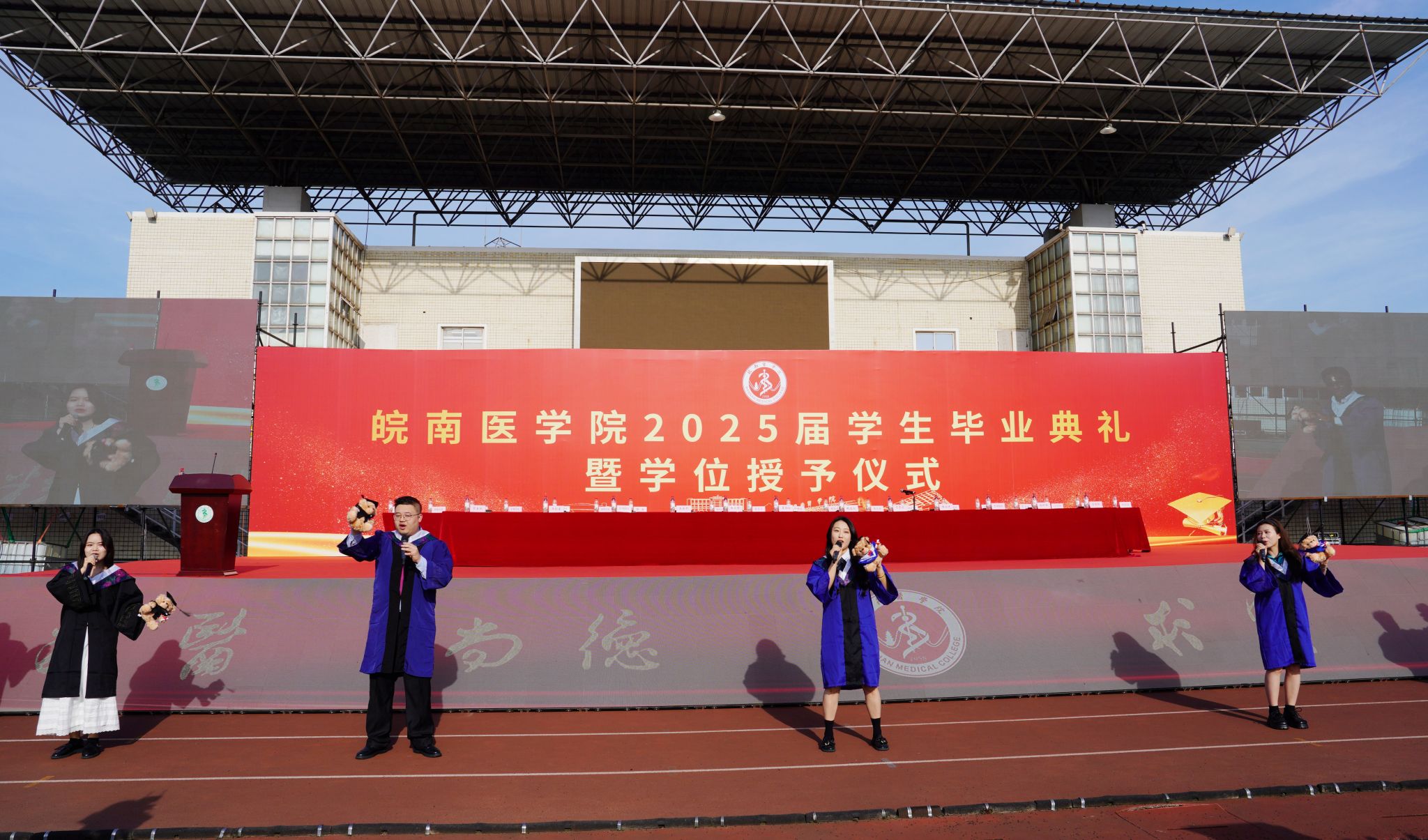 姚应水以“带上‘锦囊’ 卸下‘包袱’ 奔赴远方”为题发表了饱含深情的讲话。他代表学校向圆满完成学业的全体毕业生表示祝贺,向辛勤培育、悉心教导的老师和父母们表示感谢。姚应水回顾了同学们与皖医共同成长的心路历程,充分肯定了同学们在求学路上的耕耘、沉淀和收获,并向毕业生送上四样“锦囊”:一是带上永不褪色的远大理想,胸怀“国之大者”,将个人理想融入时代洪流,在民族复兴的壮阔征程中,刻下属于2025届的荣光。二是带上永不冷却的人文温度,苦练医学技术,传递医者温度,温暖他人、照亮世界。三是带上永不止步的探索精神,永葆对知识的好奇、对探索的热忱,让学习成为一种生命习惯。四是带上永不改变的真挚祝福,将师生情、同窗情保存心间,化作未来征程上的星光,从中汲取力量。同时,他希望同学们卸下“包袱”,丢掉焦虑、丢掉浮躁,在未来人生的道路上深耕细作,行稳致远,书写无愧于时代、无愧于青春的壮丽诗篇。