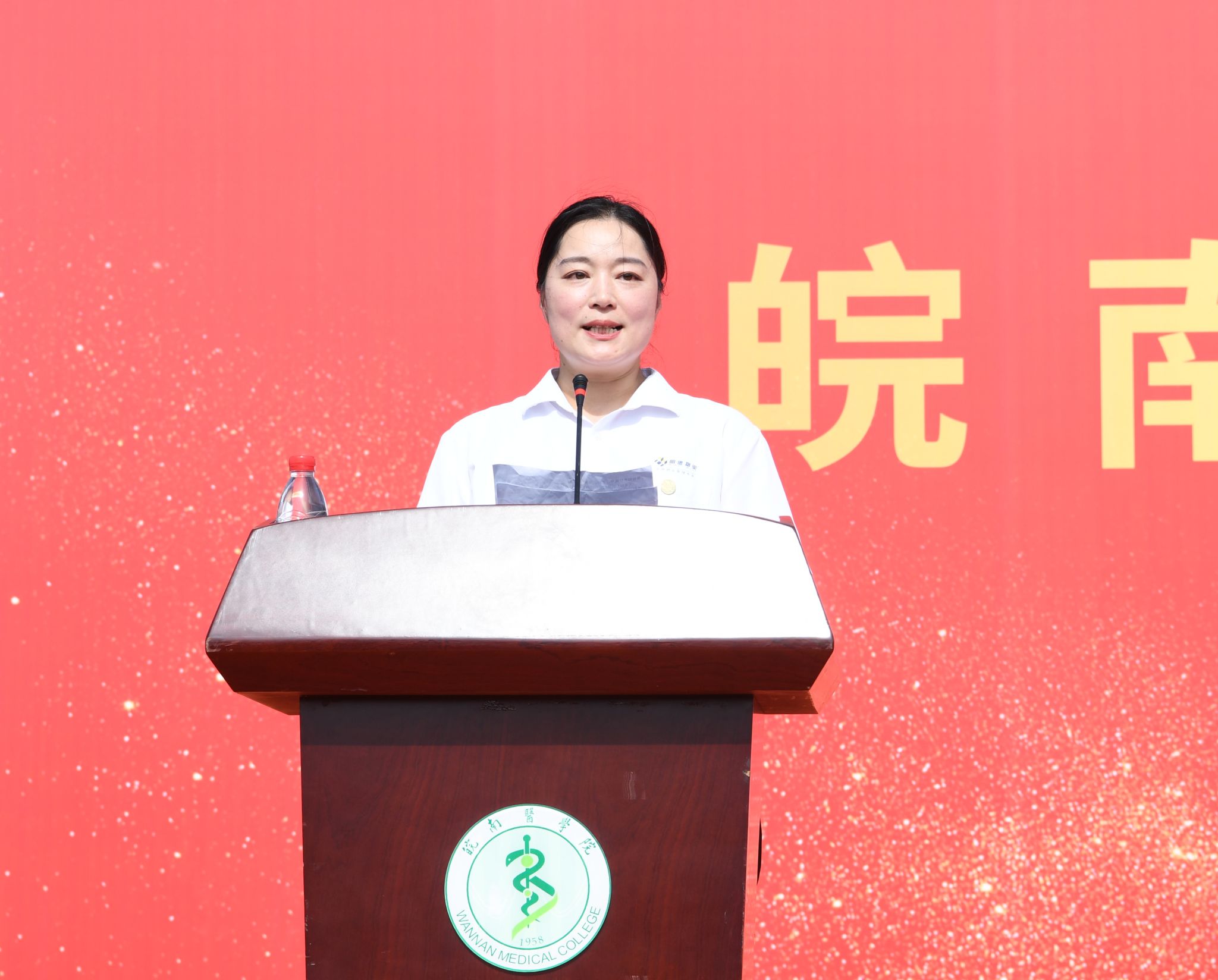 教师代表、基础医学院产翠翠分享在皖医求学工作的经历,勉励同学们要保持终身学习的热情,保持对医学事业的热爱,用自己的专业特长发光发热,绘就医学事业的宏伟蓝图。